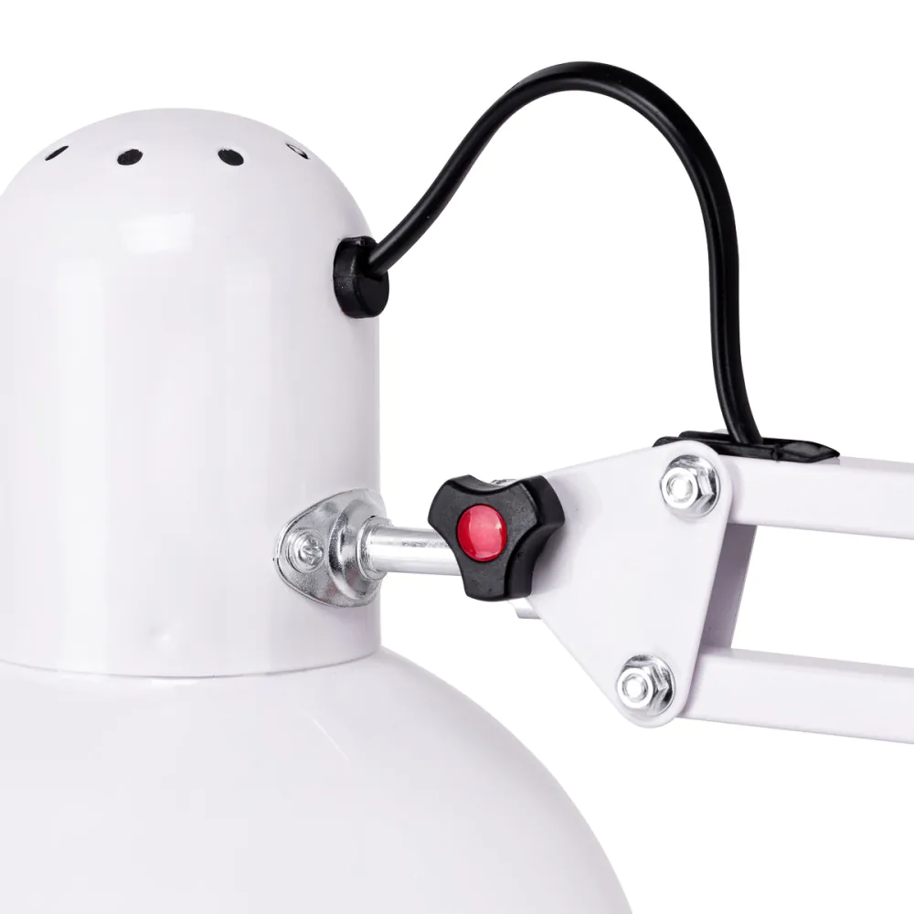 Statyw w klasycznym odcieniu bieli oraz polerowane wykończenie nadają lampie elegancki wygląd, który świetnie komponuje się z każdym wnętrzem. Solidna konstrukcja zapewnia stabilność podczas codziennego użytkowania, co sprawia, że lampa jest niezawodnym narzędziem w każdym gabinecie. Umieszczone u góry otwory wentylacyjne zapobiegają przegrzewaniu się urządzenia, jednocześnie minimalizując widoczność kurzu, co ułatwia utrzymanie lampy w czystości.