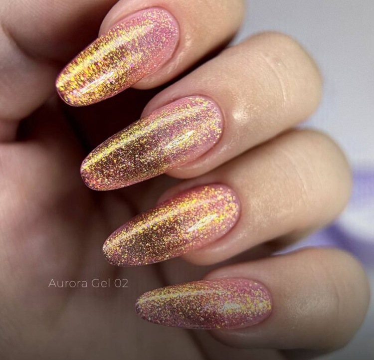 Aurora Gel to wyjątkowa linia żeli do zdobień, stworzona, aby dodać stylizacji świetlistego, eleganckiego efektu. Każdy z ośmiu odcieni zawiera ultradrobny shimmer, który mieni się w ruchu i subtelnie zmienia ton w zależności od światła. Półtransparentna baza pozwala stosować je zarówno solo, jak i na kolorowe podkłady — od naturalnych nude po czerń.