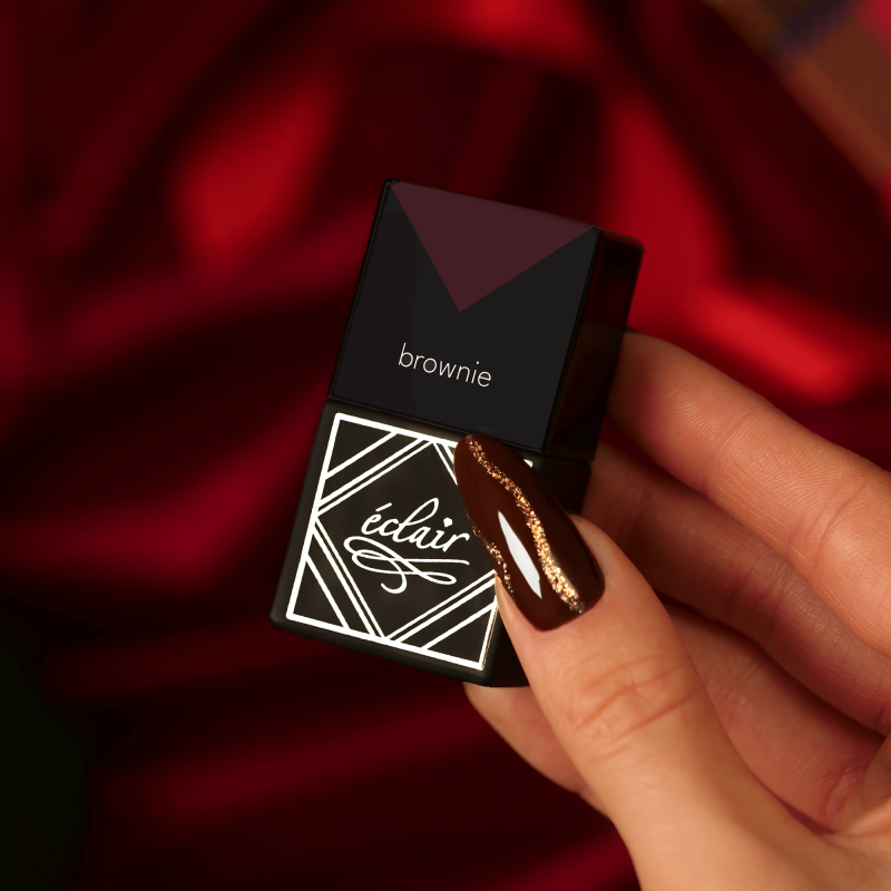 Lakier hybrydowyBROWNIEKlasyczna elegancja w głębokim brązieBrownie to odcień, który zachwyca swoją głębią i intensywnością. Ciemny, czekoladowy brąz jest doskonałą alternatywą dla czerni, wprowadzając do stylizacji nutę wyrafinowania i tajemniczości. Idealny na każdą okazję, ten lakier hybrydowy do paznokci pozwala podkreślić klasę i elegancję, a jednocześnie dodać paznokciom nowoczesnego charakteru. Brąz – stylowa alternatywa dla czerniCzerń to klasyka, ale głęboki brąz w odcieniu Brownie oferuje coś więcej – ciepło, elegancję i odrobinę zmysłowej tajemnicy. Jest to odcień, który doskonale sprawdza się w formalnych stylizacjach, ale równie dobrze komponuje się z codziennymi zestawami. Jego głęboka, intensywna barwa sprawia, że paznokcie prezentują się stylowo i wyrafinowanie. Lakier hybrydowy Eclair Brownie to wybór dla kobiet, które cenią klasyczne kolory, ale pragną dodać im odrobiny świeżości i nowoczesności. Kolekcja CHERRY ON TOP – Klasyka i nowoczesnośćLakier hybrydowy Eclair Brownie jest częścią kolekcji CHERRY ON TOP, która łączy intensywne kolory z unikalnym charakterem. Zestaw tych lakierów został stworzony z myślą o kobietach, które pragną łączyć ponadczasową elegancję z odważnymi akcentami. Cechy kolekcji CHERRY ON TOP: