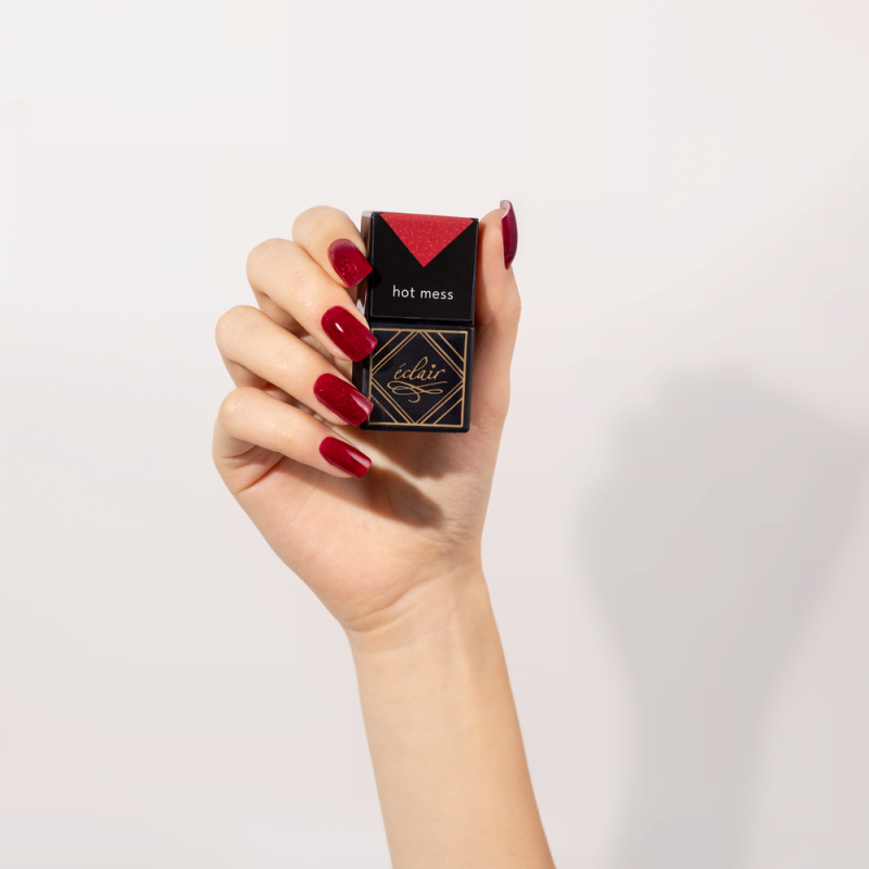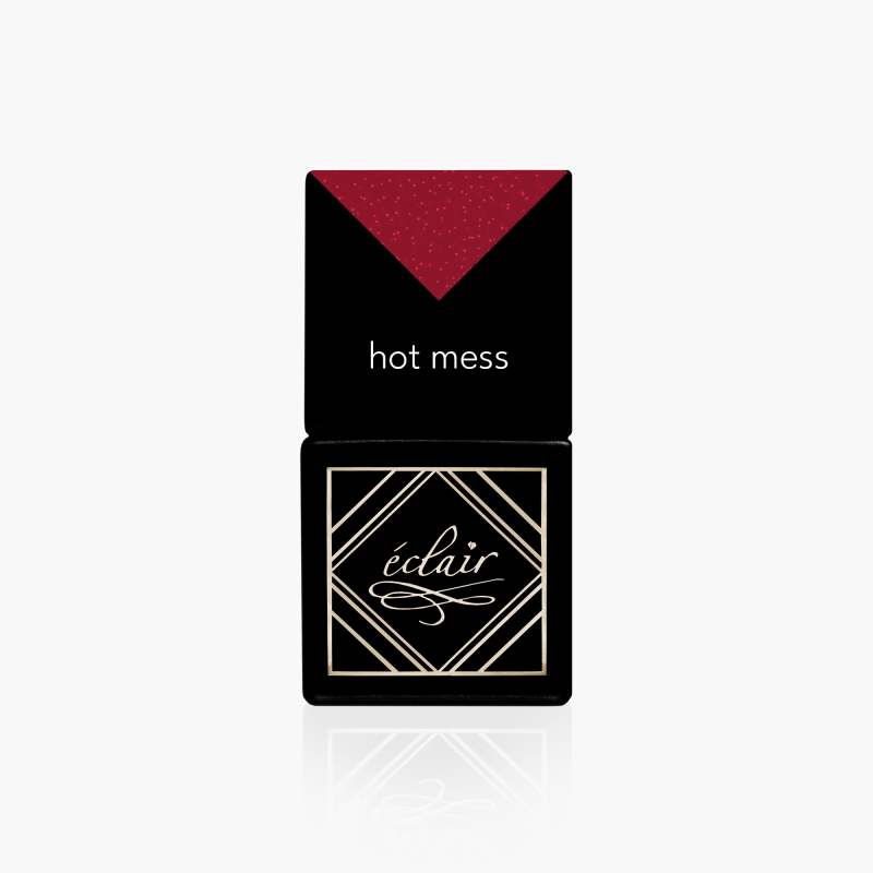 W przeciwieństwie do żelowej świeżości JELLY RED czy perłowej elegancji MAIN CHARACTER, HOT MESS stawia na stylowy błysk z pazurem. To lakier, który wygląda jak luksusowa czerwona sukienka – robi wrażenie, ale nigdy nie dominuje.