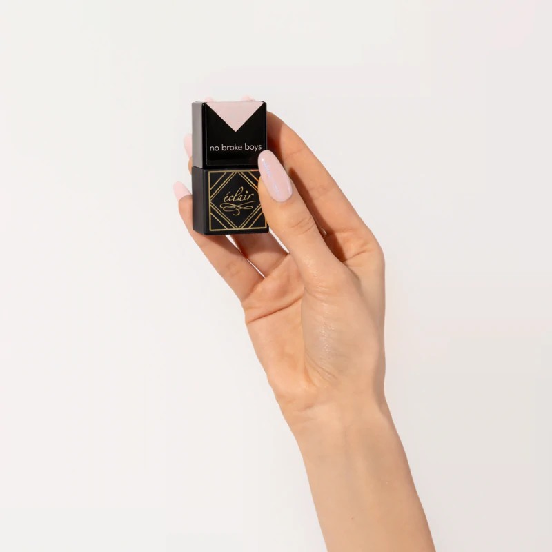 - NO BROKE BOYS – jasnoróżowa baza z delikatną niebieską drobinką widoczną w ruchu dłoni