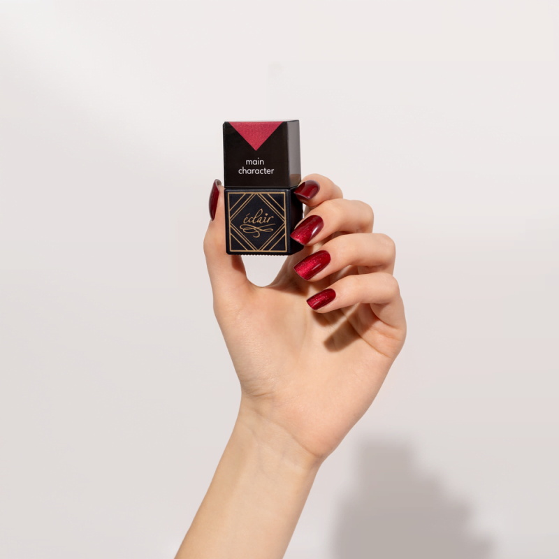 MAIN CHARACTER to odcień, który nie potrzebuje ozdobników, by przyciągać uwagę. Już sama jego głęboko nasycona barwa czerwonego wina, wzbogacona delikatną perłową poświatą, tworzy efekt „wow” przy każdej stylizacji. Subtelny blask nadaje paznokciom trójwymiarowej głębi i sprawia, że światło odbija się od nich niczym od tafli szkła.