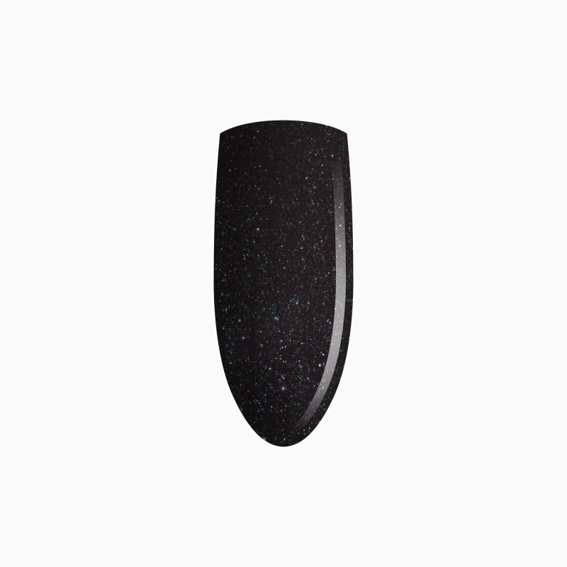 Lakier hybrydowy RIDERS ON THE STORM 7ml to wyjątkowa propozycja dla fanek ciemnych stylizacji. To głęboka, intensywna czerń z chłodnym połyskiem, w której zatopiono subtelne srebrno-granatowe drobinki. Efekt? Iskrząca tafla niczym nocne niebo pełne gwiazd – elegancka, tajemnicza i nieoczywista.