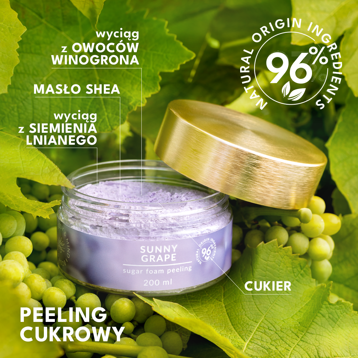 Sunny Grape SUGAR FOAM PEELING – codzienny rytuał wygładzenia i ujędrnienia skóry