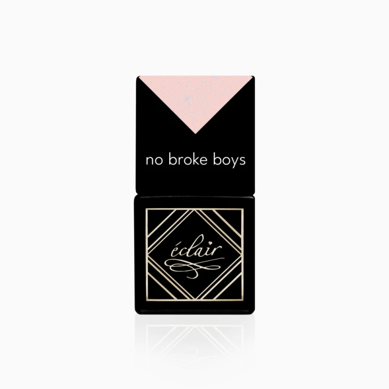 Różowy lakier hybrydowy z niebieską drobinką NO BROKE BOYS mieści się między czystym pastelem a shimmerem – drobinki są widoczne, ale kolor zachowuje pastelowy, spokojny charakter z jednym dodatkowym wymiarem świetlistości.