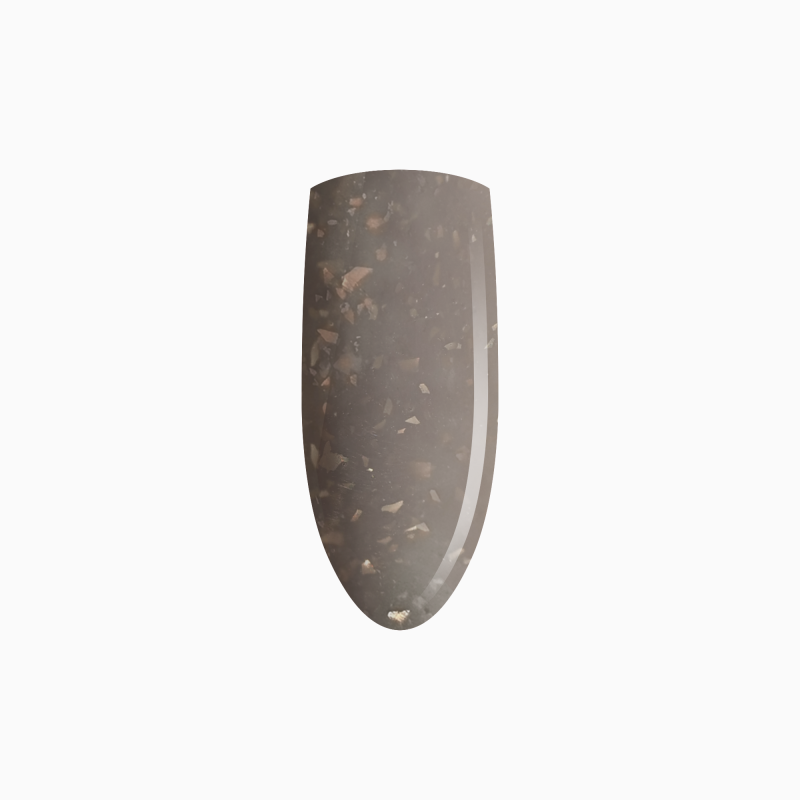 Stone przedefiniuje Twój manicure, łącząc minimalistyczną elegancję szarości z hipnotyzującym blaskiem złota. Dzięki subtelnie umieszczonym metalicznym złotym ścinkom, ten lakier hybrydowy staje się symbolem nowoczesnej luksusowości. Jego unikalny odcień nie tylko przyciąga spojrzenia, ale także wyróżnia się na tle innych, tworząc niezwykle atrakcyjny efekt na paznokciach.