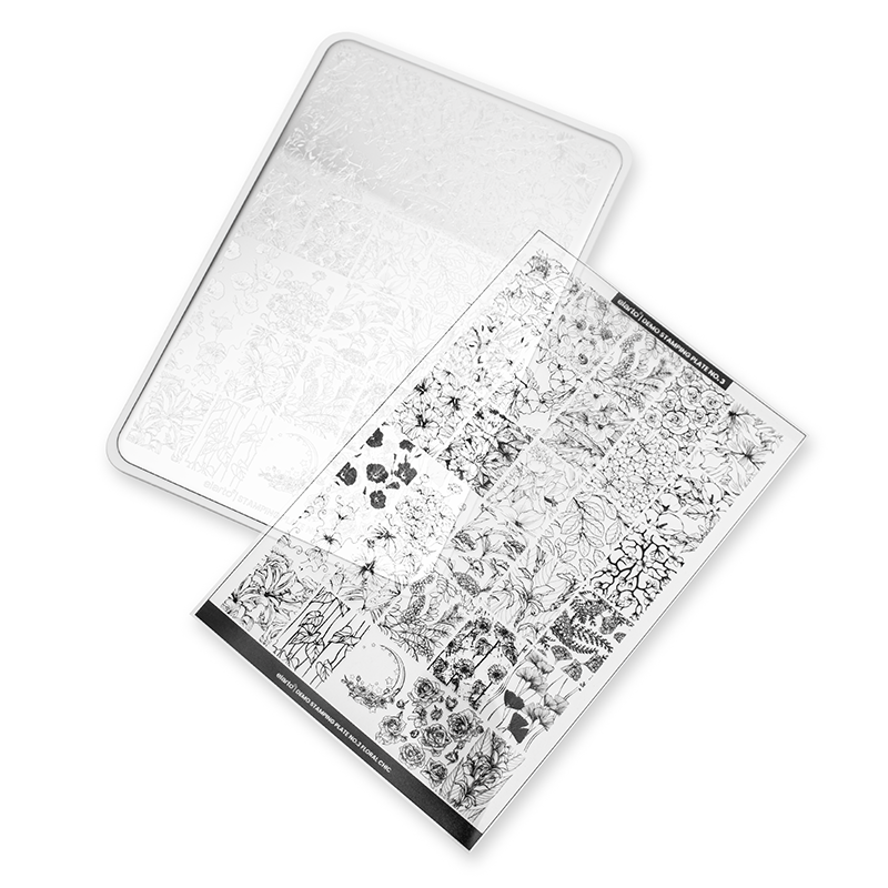 Blaszka elarto Stamping Plate No. 3 Floral Chic wykonana jest z wysokiej jakości stali nierdzewnej, odpornej na odkształcenia, zarysowania i korozję. Jej powierzchnię precyzyjnie wytrawiono metodą chemicznego graweru (chemical etching), co zapewnia idealne odwzorowanie nawet najdrobniejszych detali. Każdy wzór jest wyraźny, a linie ostre i spójne. Głębokość graweru jest optymalna – wzory nie są zbyt płytkie, by uniknąć rozmazywania się lakieru, ani