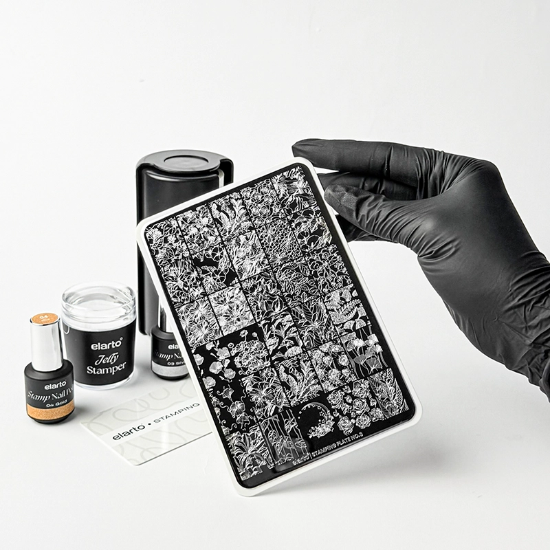 Stamping to technika zdobienia paznokci polegająca na przenoszeniu wzoru z metalowej blaszki na paznokieć za pomocą specjalnego stempla i lakieru. To świetna alternatywa dla ręcznego malowania zdobień – szybka, precyzyjna i efektowna. Cieszy się coraz większą popularnością zarówno wśród profesjonalnych stylistek i stylistów paznokci, jak i pasjonatów i miłośniczek manicure DIY. Z produktami marki elarto odkryjesz stamping na nowo – kreatywnie, wygodnie i bez kompromisów! Wybierz idealne wzory, sięgnij po dopracowane akcesoria i dobrze napigmentowane lakiery, które gwarantują perfekcyjne odbicie każdego detalu. Twórz stylizacje, które przyciągają spojrzenia.
