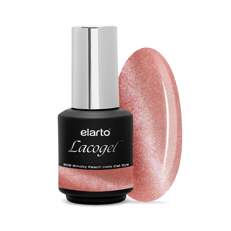 ELARTO - Lakier hybrydowy Lacogel 909 SMOKY PEACH HOLO CAT EYE-POMARAŃCZOWY BROKAT 7ML