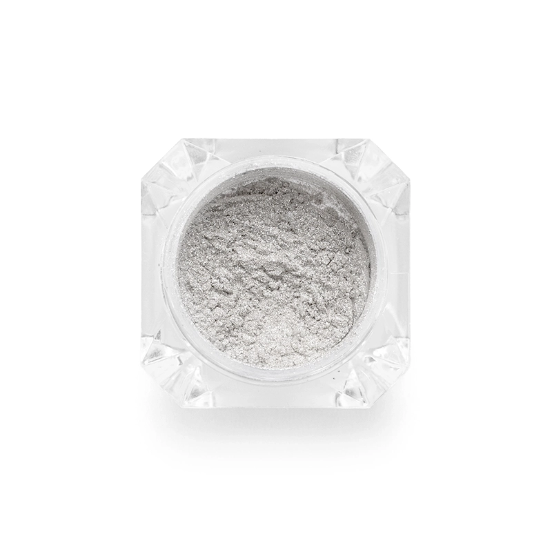 Pyłek do zdobienia paznokci elarto Chrome Powder Silver Mirror mieni się tysiącem połyskujących, srebrzysto-szampańskich drobinek.