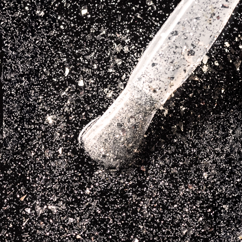 Profesjonalny top hybrydowy typu no wipe, zapewniający trwałe wykończenie z efektem flash. Nadaje manicure intensywny, świetlisty połysk, który przyciąga uwagę i podkreśla charakter stylizacji. Transparentna baza produktu z delikatnymi, srebrnymi drobinkami oraz srebrnymi płatkami nadaje manicure trójwymiarowy połysk, który zmienia się w zależności od kąta padania światła.