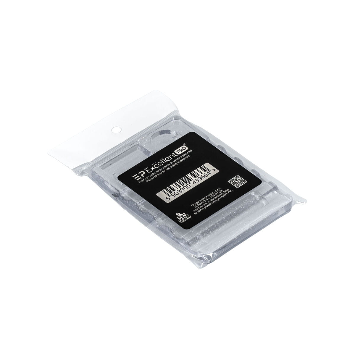 EXCELLENT PRO PALETKO-HOLDER NA AKCESORIA - praktyczne i wielofunkcyjne akcesorium wykonane z akrylu, które ułatwi pracę każdej stylistce paznokci. Pięć oddzielnych rowków przeznaczone jest do odkładania pędzelków, pęset i sond co pozwoli na lepszą organizację i czystość na stanowisku pracy. Dodatkowe dwa wyżłobienia idealnie nadadzą się jako pojemnik na cyrkonie i inne ozdoby. Paletko-holder doskonale sprawdzi się również jako paletka na wszelkie produkty do wykonywania zdobień tj. lakier, żel itd.