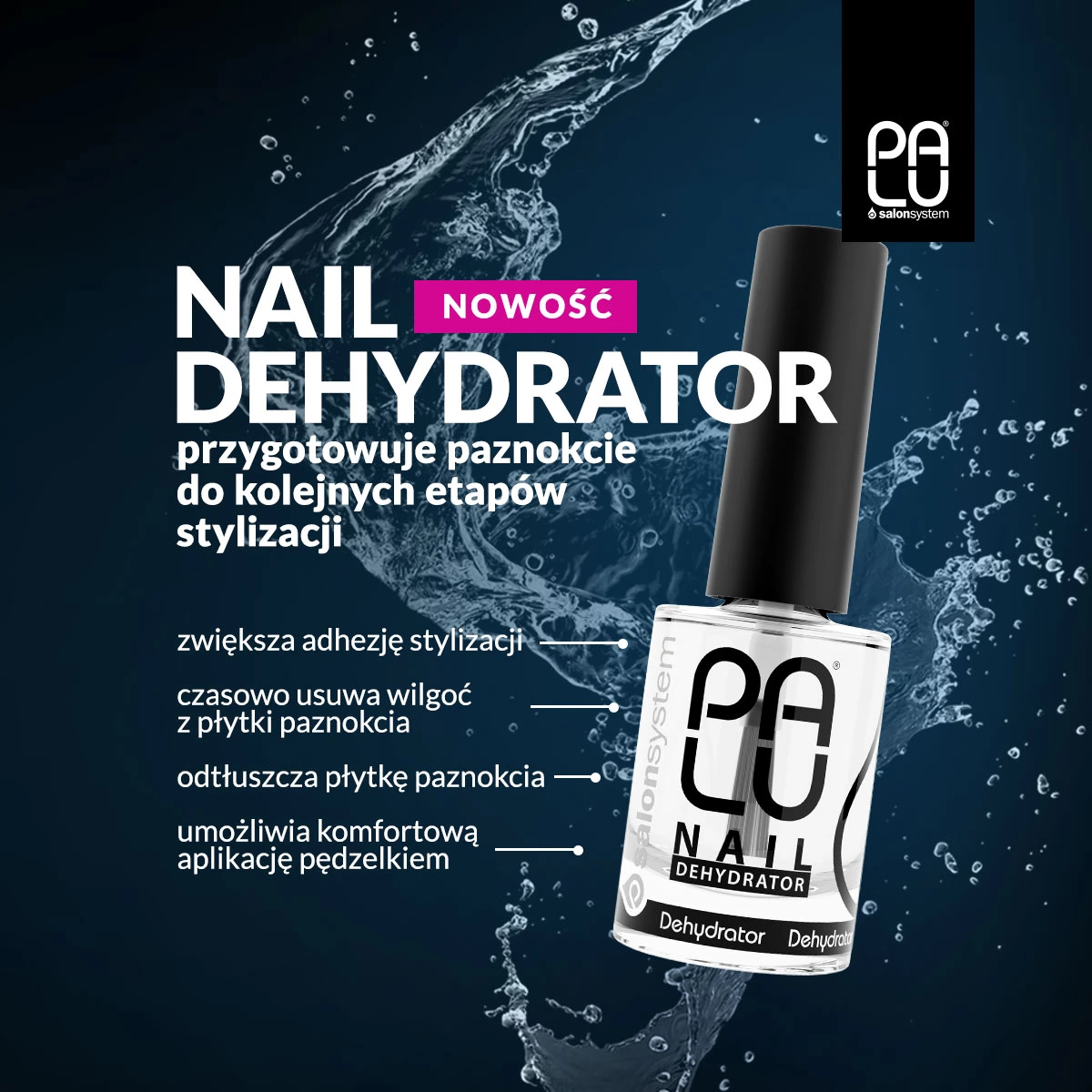 Płyn odtłuszcza i usuwa wilgoć z paznokcia.
