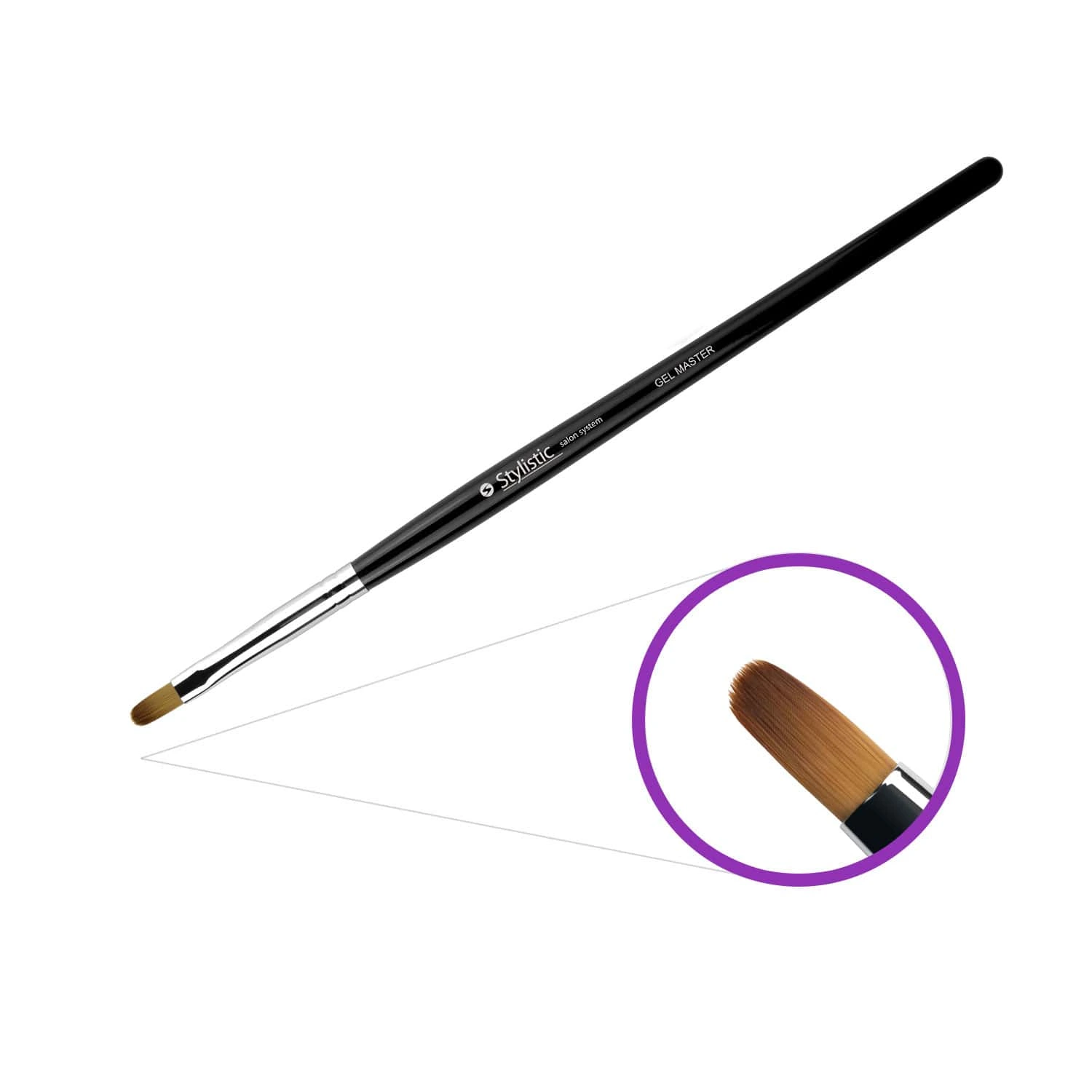 Ten płaski pędzel o owalnym kształcie idealnie nadaje się do pracy żelem.