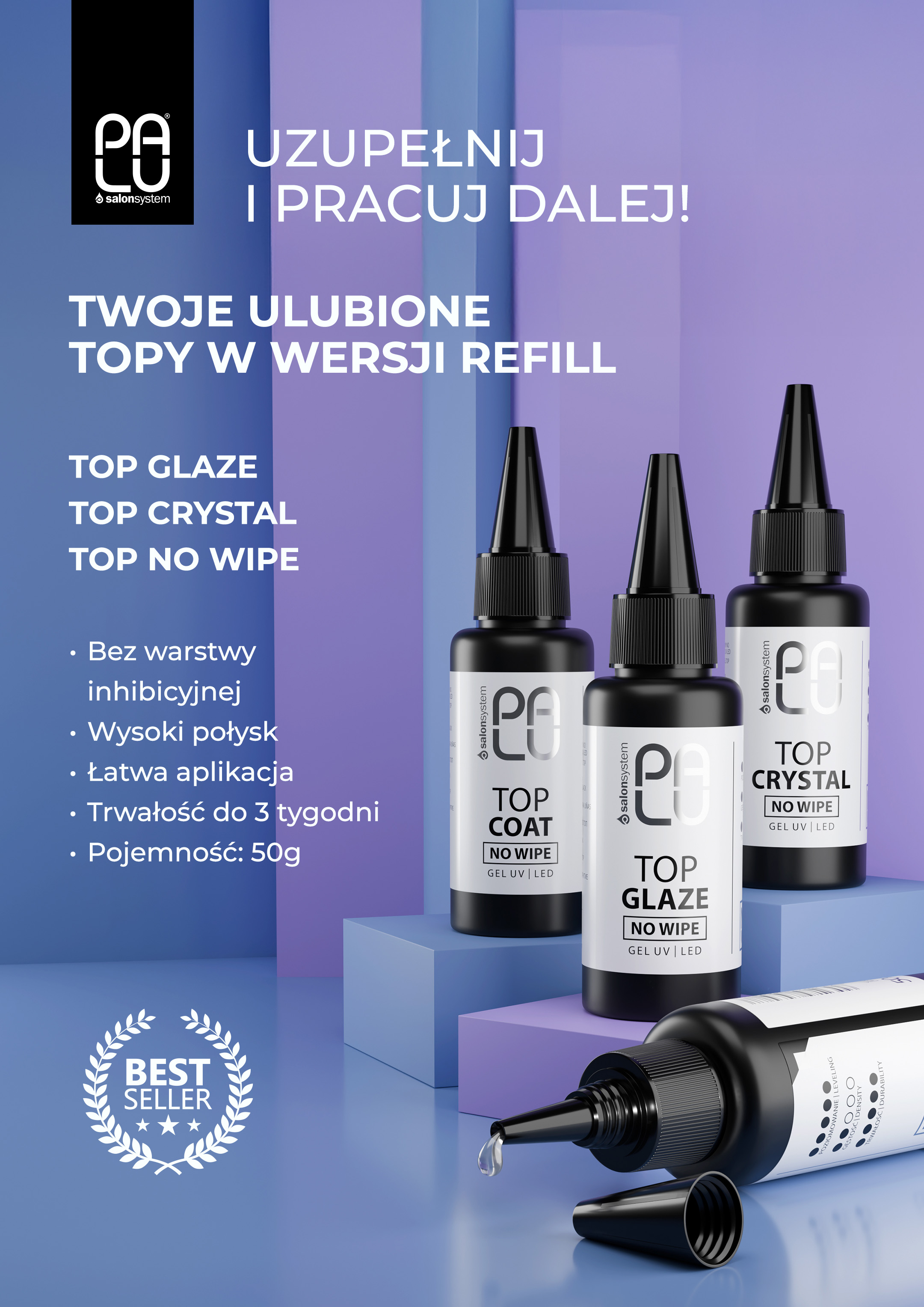 Wersja refill do dolewania to idealne rozwiązanie dla profesjonalistek – więcej produktu, ta sama niezawodna jakość i komfort pracy. Palu to kosmetyki od profesjonalistów dla profesjonalistów. Chcemy dać Ci swobodę wyboru, gwarancję jakości i wygodę pracy.