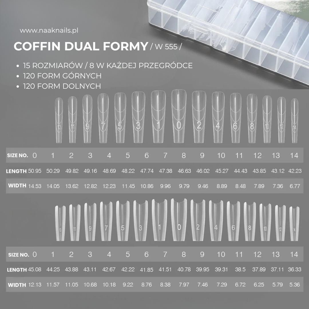 Dual formy kanapkowe (Sandwich System) to najnowsza generacja form do przedłużania paznokci, która łączy precyzję pracy salonowej z wygodą i szybkością aplikacji.