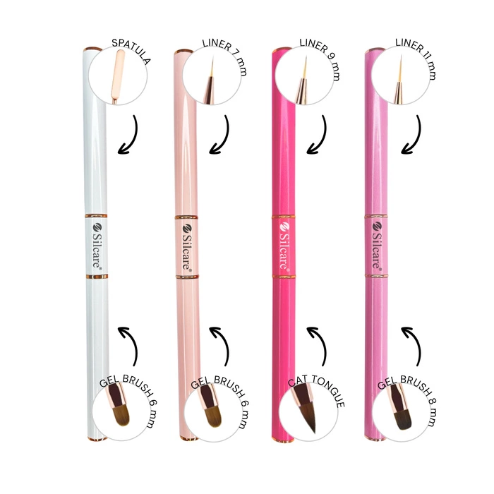 SILCARE - Pędzelek dwustronny do akrylożelu nr 6 i szpatułka