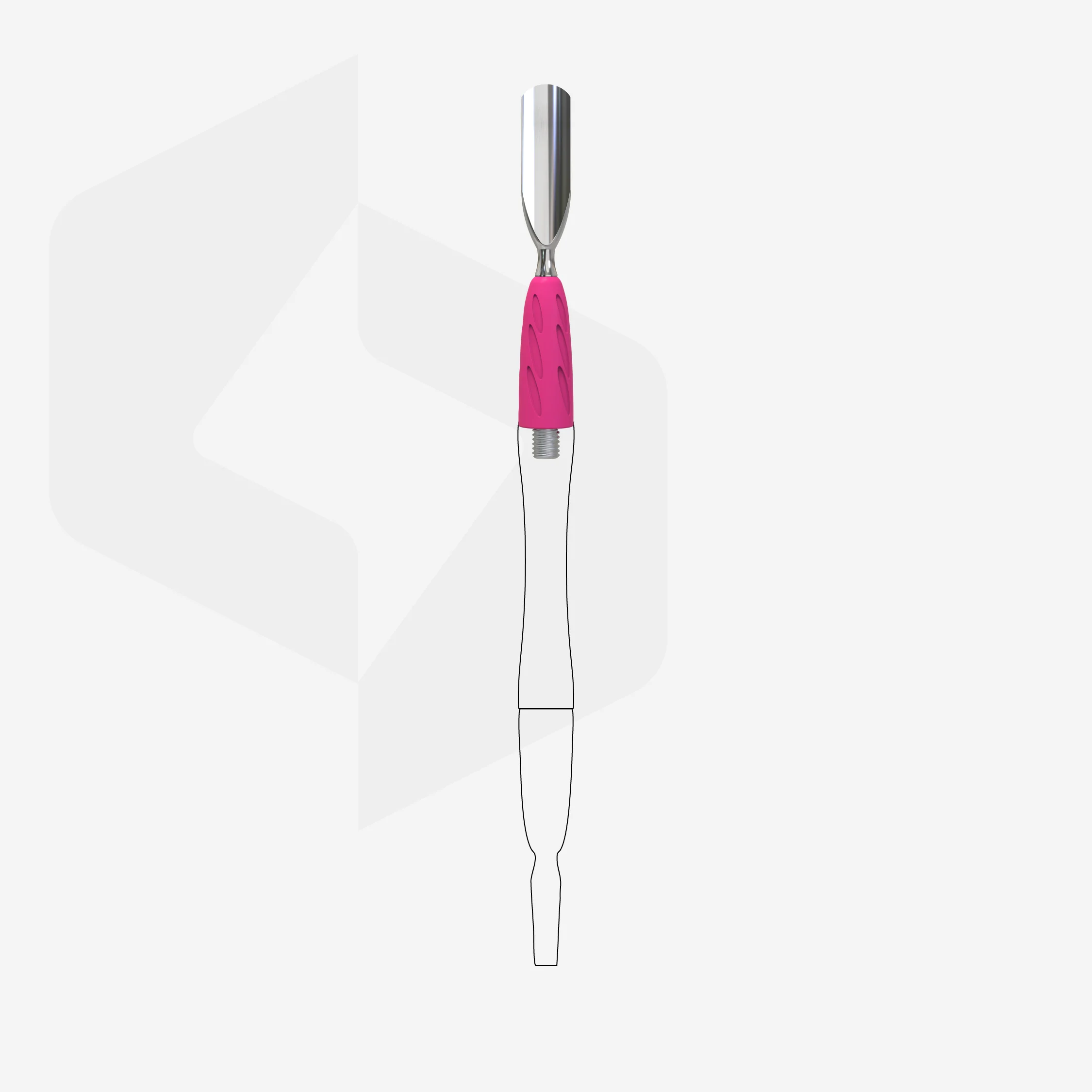 - "Popychacz szeroki zaokrąglony" jest przeznaczony do unoszenia i odsuwania skórek w celu ich dalszego usunięcia podczas wykonywania manicure i pedicure.