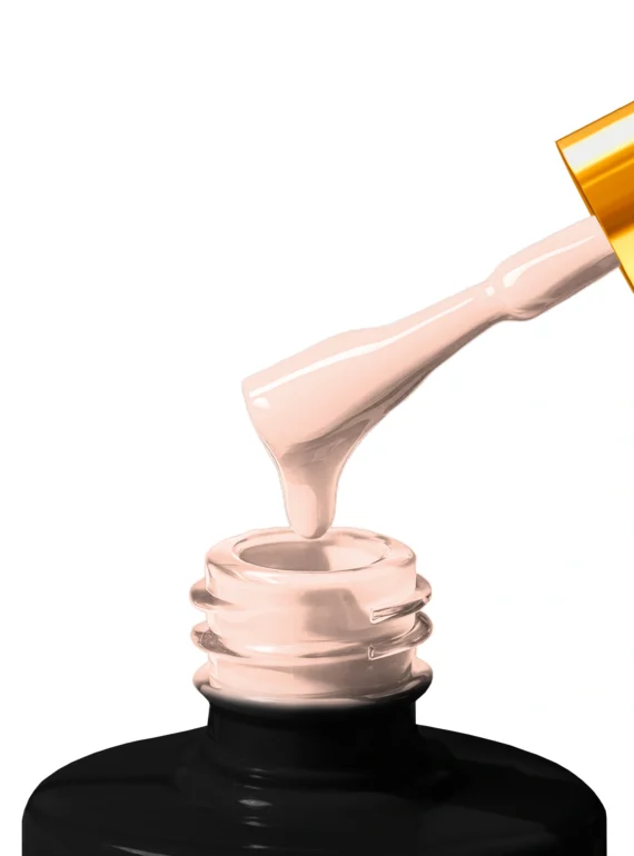 Półtransparentny Top w kolorze nude, którym można pokryć paznokcie wybudowane żelem oraz bazą hybrydową. Idealnie sprawdzi się w stylizacjach french.