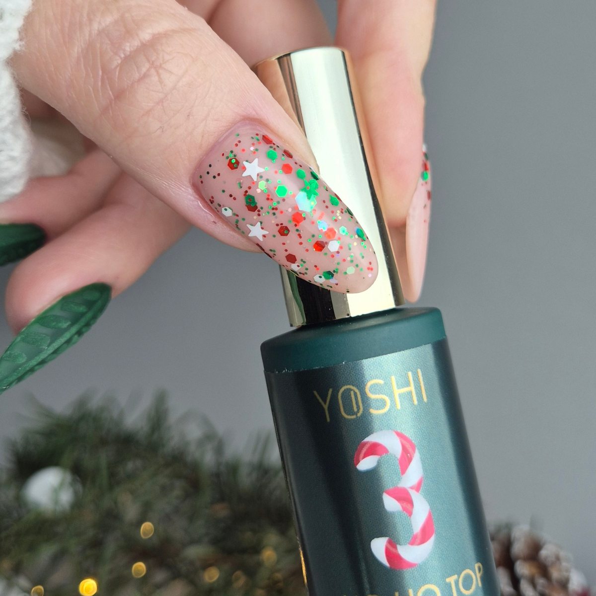 Święta mają swój blask… i właśnie ten blask zamknęliśmy w czterech limitowanych topach HO HO TOP YOSHI. Każdy z nich to inny sposób na grudniową magię: trochę światełek, trochę śniegu, odrobina świątecznego chaosu i mnóstwo błysku. Wystarczy jedna warstwa, by zwykły kolor zamienił się w świąteczną stylizację, która będzie trwała i piękna.